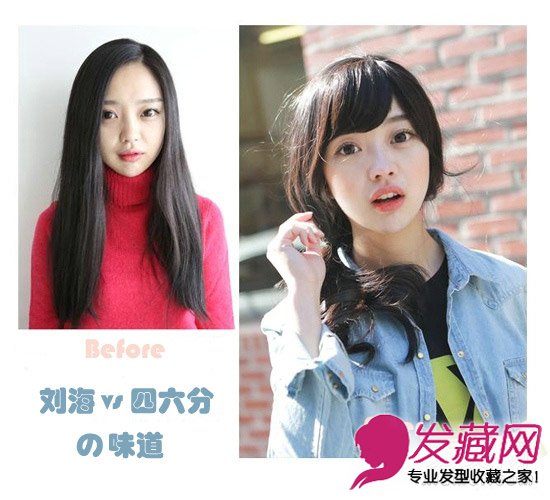 嗯,模特很漂亮,其实这两种发式都很适合她,两种不同的味道。不过增添的假刘海后的发型,似乎更活泼更具动感。