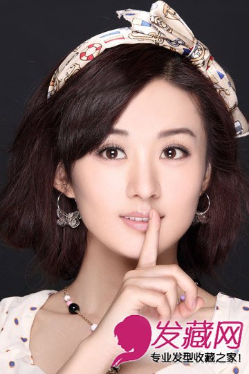 这款假短发造型,用发带将长发扎起,更显甜美俏皮,齐肩的伪短发设计展现多种风情。