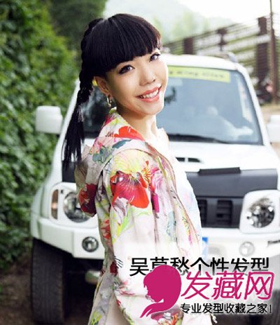 将马尾头绑上麻花辫的造型可以更加充满造型一些。而简单的麻花辫造型制造出复古的感觉,与个性结合十分搭配。