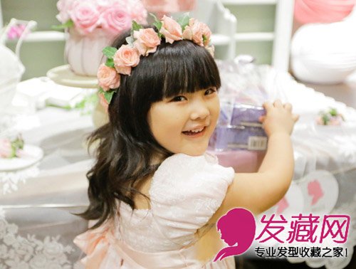 搭配粉裙很是可爱,微卷的发梢更显公主范。