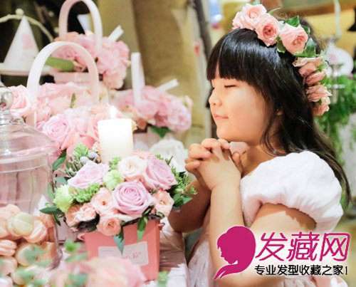 长发在花环的映衬下很是甜美可爱,肉嘟嘟的叫人想捏一把。
