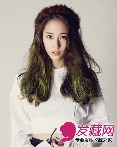 挑染草绿色发束充满个性,整个发型属于冷色调,十分适合她高冷的形象。