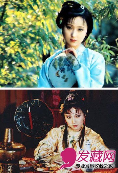 林黛玉秀丽典雅的古装发型为整个人的气质增色不少,两侧辫子尽显少女气息,薄薄的刘海似空气般轻盈可人。