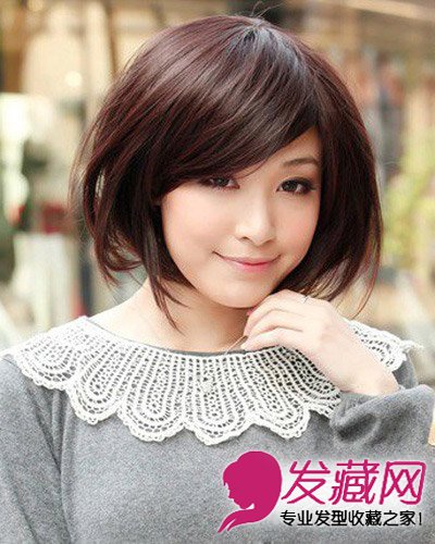 说到圆脸适合什么刘海,斜刘海是一个不错的选择。这款九一分界的蓬松bob头,发丝有着非常顺滑的感觉,线条感也极佳。发尾的部分紧贴着脸部的线条,能够帮助圆脸的朋友修饰出优美的下巴线条哦,让脸蛋看起来没那么圆润。两边的头发修剪得非常清爽,很飘逸哦。