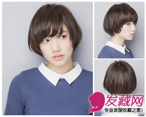 锅盖头贴合整个头型,侧分刘海显得时尚一点,刚过耳的长度也能很好地遮掩脸部轮廓。