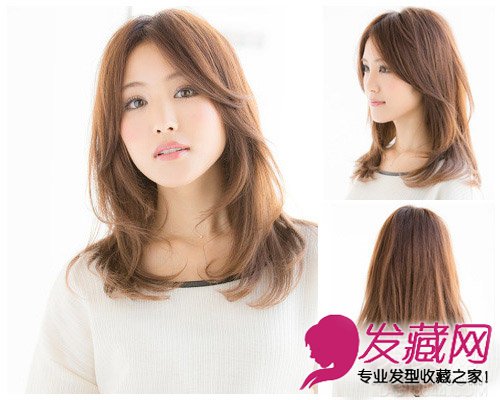 中分头发,两侧头发有层次地叠放,也是有修颜的作用哦。