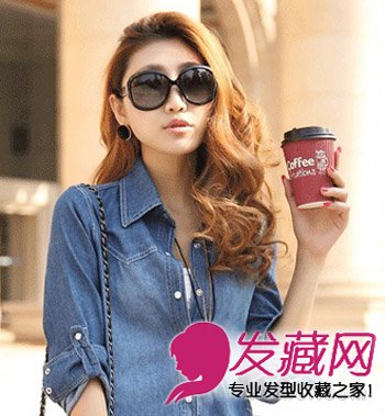 偏分的刘海沿着眼角翻转垂下,展现出一种女王风范,同时也遮掩了颧骨高的缺点,棕黄色的染发,时尚抢眼,搭配一个个性的墨镜,潮味十足。