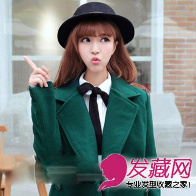 简单的刘海发型显露出别致的气质感,搭配上帽子显露出别致的甜美与个性的一面,整个造型细适合校园女生,不仅简单而且有气质。