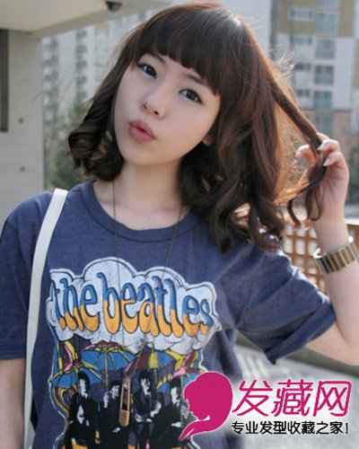 日系齐刘海长卷发发型 凌乱蓬松的烫发发型