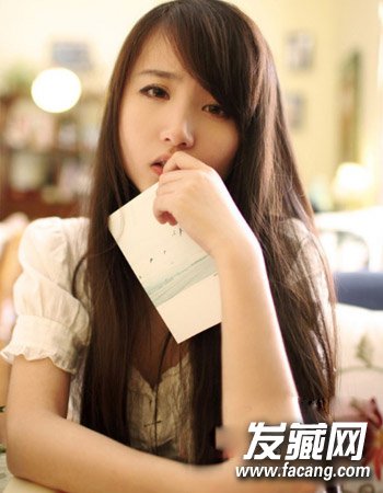 侧分的刘海发型也是摆脱窄额头的不二选择。柔顺的长