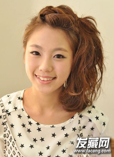 吧。前额的刘海编成饱满的发辫,卷发摆动在左侧脸颊,展现出时尚又清纯的气质。