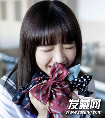 ,弧形修剪的齐眉刘海空气感十足,配合清新的披肩直发,清纯可人的学生