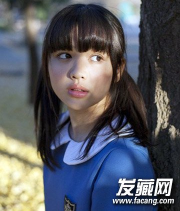 很有呆萌气质的一款日系双马尾辫扎发,乌黑的齐刘海长发扎简单的双