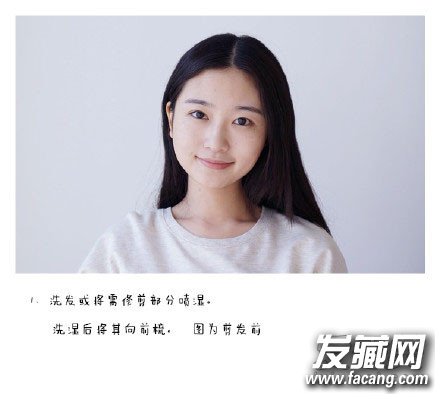 洗发或将需剪部分部分喷湿,洗湿后将其向前梳。