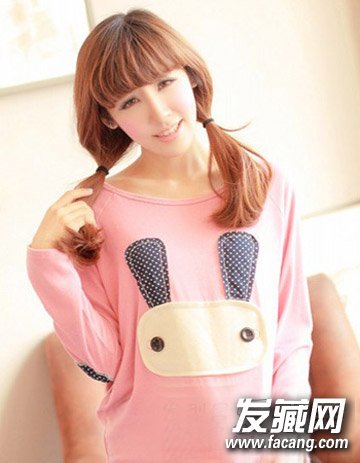 简单的双马尾扎发发型似乎越来越受妹纸们的喜爱了,而配合这种厚重的齐刘海造型与温暖的橘黄色染发更显青春朝气感。