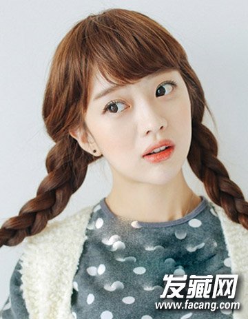 可爱的双麻花辫不仅时尚而且有气质感,小巧而且甜美,蓬松的斜平刘海自然显气质,造型可爱又活泼。