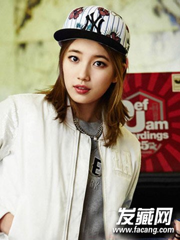 适合齐肩发MM打理的一款韩式韩式中短发发型,挑染的中分露额披肩发清新随性,简约的棕色系染发衬托肤色,搭配棒球帽,甜美个性的学生发型设计。