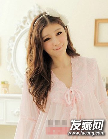 清新自然的棕色染发时尚吸睛,而配合这种简单而蓬松的长发烫发设计与中分的造型相搭,头顶一个简单的蝴蝶结发箍更添女生的甜美清纯感。