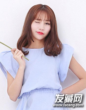 简单自然的空气感刘海凸显着女生十足的可爱甜美风,再配合时尚的棕色染发与简单的齐肩中发