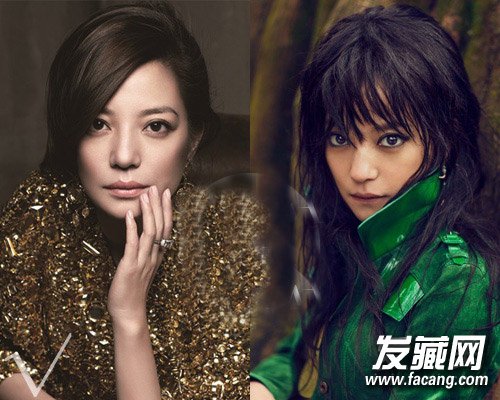 刘海盖住额头的赵薇眼睛显得更大了,但却没了斜分刘海时的优雅美感,感觉所有的重点都在眼睛上。而露出大部分额头的斜分刘海更加委婉妩媚,具有熟女味道。