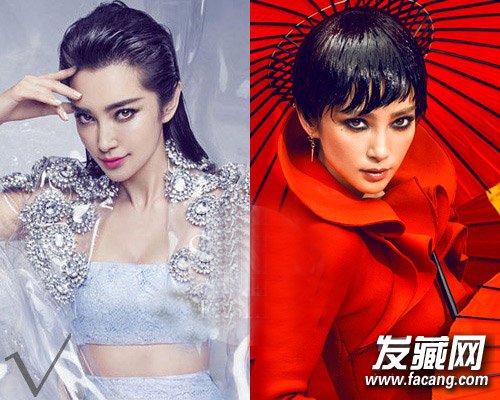 李冰冰的大片大多数都是时尚干练霸气的all-back造型,服帖的刘海显得太过死板。