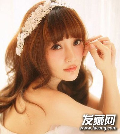 半月形内扣刘海打造空气感,修饰脸型。两边的刘海儿要顺着脸部边缘向下延伸,内扣的效果减缓方脸视觉感,并且看起来萌萌哒。