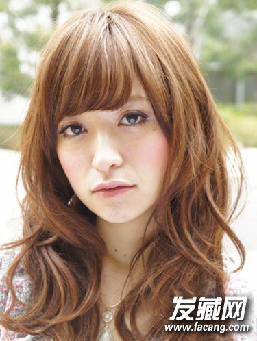 刘海是最好的遮盖高额头的工具啦,相信这也是很多MM所采用的修颜方法。这款发型搭配绵密的螺旋卷发,很有日系美人的味道哦。