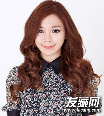 同样是时尚的偏分造型设计,再配合这种时尚的棕色染发设计与大卷形式的长发烫发造型,简单修颜更添十足的慵懒妩媚风哦。