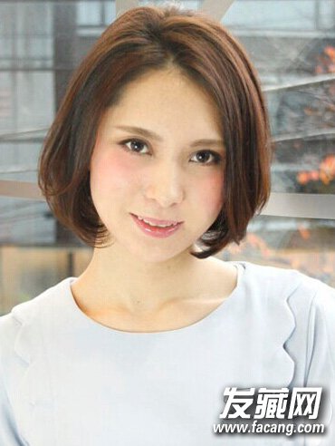 女生齐刘海发型分享 时尚的栗色染发清新迷人