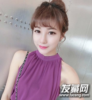 清爽的扎发设计当然也是这个夏季的首先发型了,而配合这种内扣形式的清新空气感齐刘海造型与简单的丸子头扎发更添十足的清爽活力感。