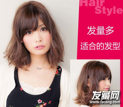 发型点评:这款中短发最别致的处理在于发尾的设计,别致的半圈卷发营造出蓬松的质地,斜刘海更显优雅感。