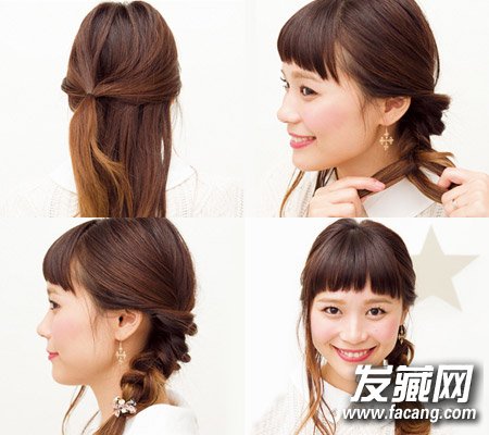 step 3:编发最后用时尚发圈固定发尾,就完成这款齐刘海扎发。