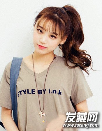 炎炎夏季怎么能少了一款清爽的扎发发型呢,像这款简单的女生高马尾扎发就很显小女生十足的青春活力风,配合时尚干练风的棕色染发与空气感刘海同样灵动迷人。