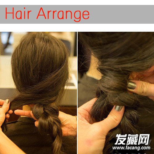 第四步: 将左右两侧头发分别缠绕捆绑编发根部,