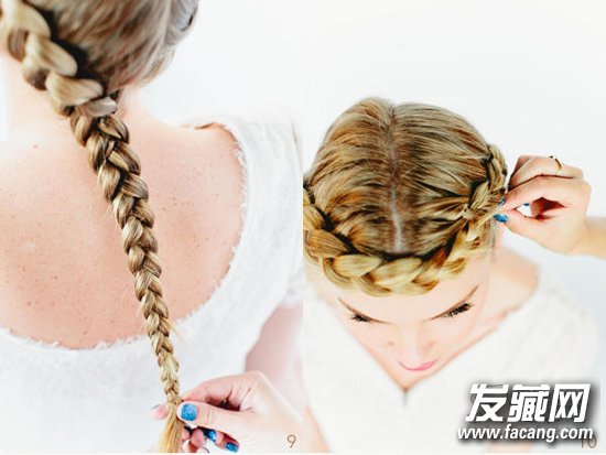 ¡¡¡¡10.°Ñ±àºÃµÄÍ··¢»·ÈÆÔÚÄÔºó£¬Ê¹µÚÒ»´Î±àµÄ·¢±èºÍµÚ¶þ´Î±àµÄÖØºÏ¡£½«·¢Î²µÄƤ½î²ØÆðÀ´¡£´¦ÀíºÃ·¢Î²µÄС覴á£