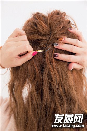 1、把头顶的头发在后脑勺轻轻拧卷起来,稍微往上推的同时用发卡固定。