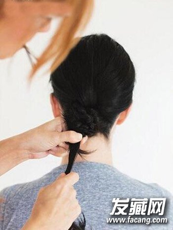 3、两股辫子捋至在脑后根部,并调整好位置及整体
