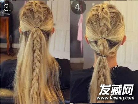 Step 3:上面区域和发辫绑在一起,形成半扎发。