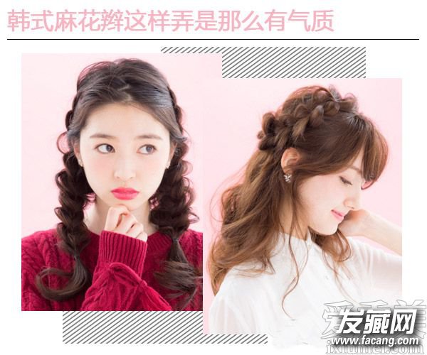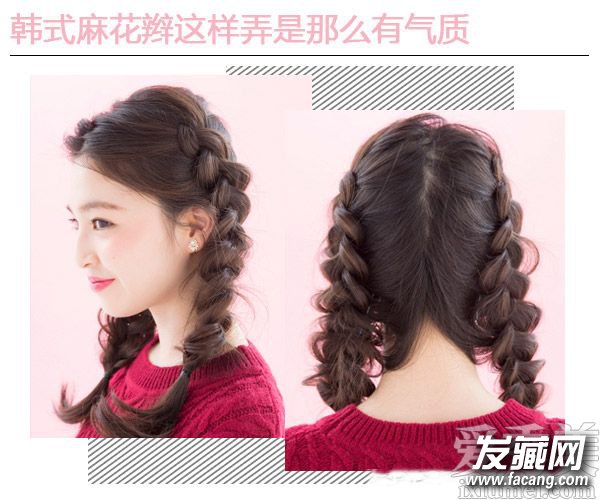 本来双麻花辫看起来会有写土气,但是这款韩式麻花辫发型是利用特别的发线在蓬松的辫子,让造型看看起来造型甜美可爱。