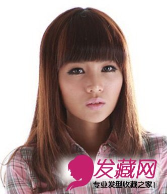 梨花头发尾的微卷造型,给人俏皮感中又略带轻熟女的感觉,过眉的齐