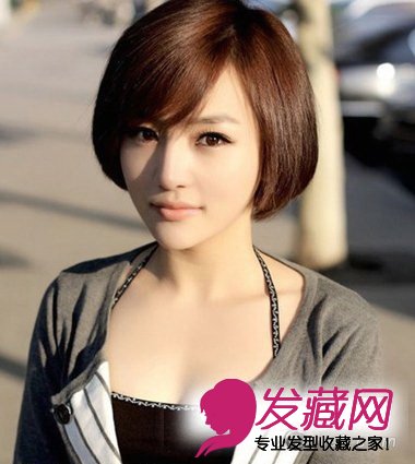 顺直的波波头发型,给人很清新的感觉,斜刘海的