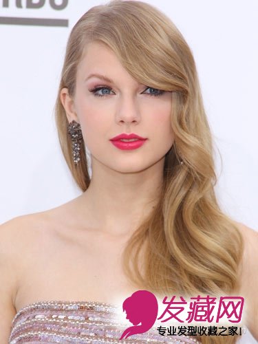 好莱坞式螺旋波浪以及柔软的侧边分发型,让泰勒•斯威夫特头发看起来既有些复古意味,又妩媚无比。