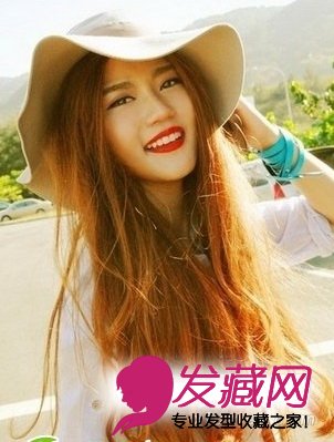 亮眼的亚麻色染发颜色使这款长发烫发带有温暖阳光的味道,空气感十足的发丝,发尾浅黄色染发色的渐变效果,透着和煦的阳光,展现了女生长发烫发的俏丽魅力,戴上今年最流行的红唇和宽檐帽,营造着初夏的味道。