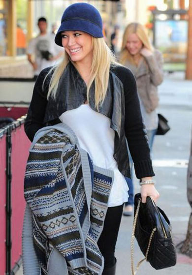 金色披肩长发用色彩活泼的小毡帽妆点,显得轻盈有活力。