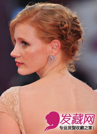 女星杰西卡·查斯坦(jessicaChastain)陪新晋导演阿尔帕西诺走意大利威尼斯电影节红毯宣传他们的新片。优雅的女王盘发让她气压全场。侧分的金色卷发梳理至耳后分成四顾编织再折叠后用发卡固定,发型整体大气又雅致。