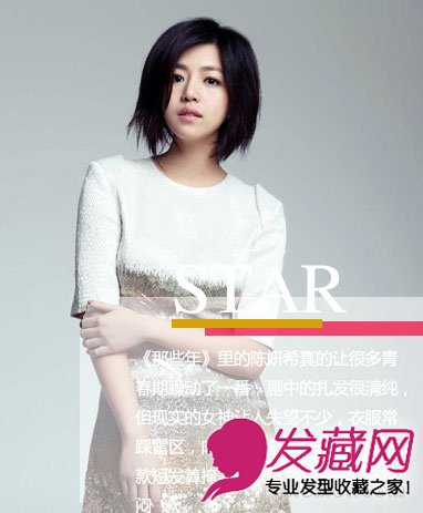 《那些年》的陈妍希让我们逝去的或存在着的青春躁动了一把,剧中的扎发很养眼,但现实的女神让人失望不少,衣服常踩雷区,肉肉的脸总爱全部露出,还好有甜甜的酒窝。这款短发掩盖了缺陷,但还是略显沉闷。