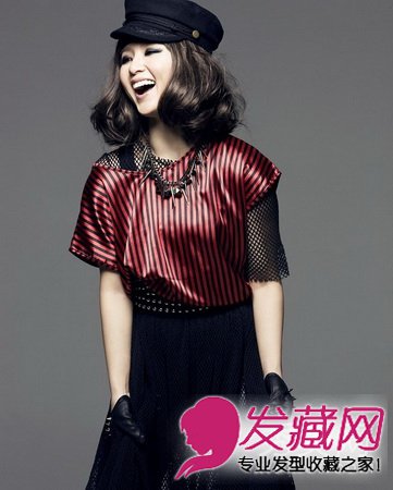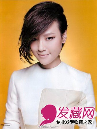 蓬松感的个性短发不仅吸引眼球,而且还让你的脸看上去小一圈,周笔畅的这款蘑菇头发型适合走个性门路短发的MM哦。