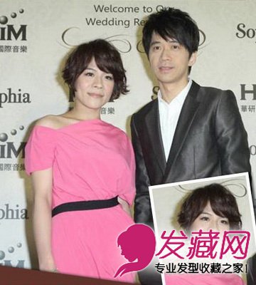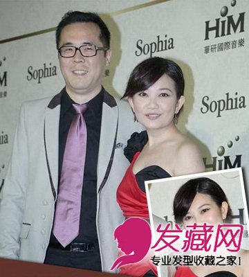 Selina与老公张承中亮相,Selina正想要留长发,头发正式半长不短的时期,她将中长发扎成小辫 ,没有留刘海,将头发扎好后将头顶弄的蓬松些,起到拉长脸型的效果让自己脸型较圆的Selina脸型更 加完善。