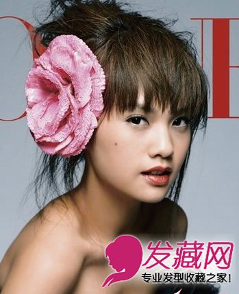 花饰甜言:此款花饰发型简朴而适用,轻轻将前发向上一别,连忙成为男孩子心目中的梦幻女孩。
