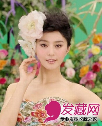 花饰甜言:范冰冰此款妆扮是为到达艺术效果,在平时可以选择蓬松的盘发搭配奶白色的花朵。